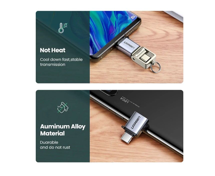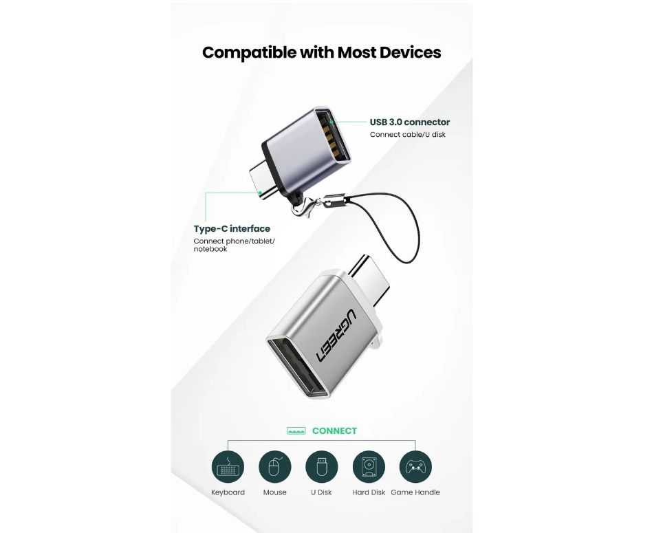 Адаптер переходник UGreen US270 (50283) Type C to USB 3.0 A Adapter Cable with Lanyard серый космос