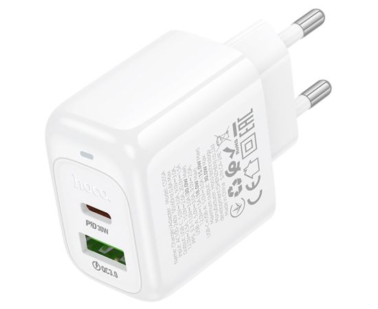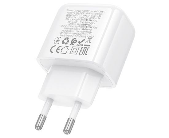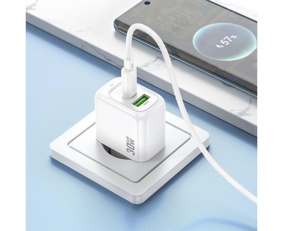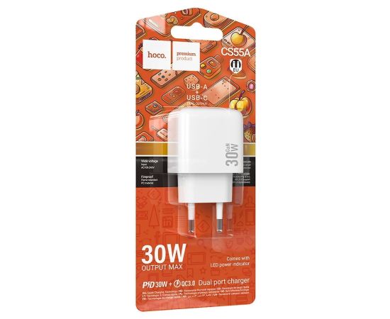 Адаптер Сетевой Hoco CS55A Surplus PD30W+QC3.0 USB/Type-C (white) (238657)