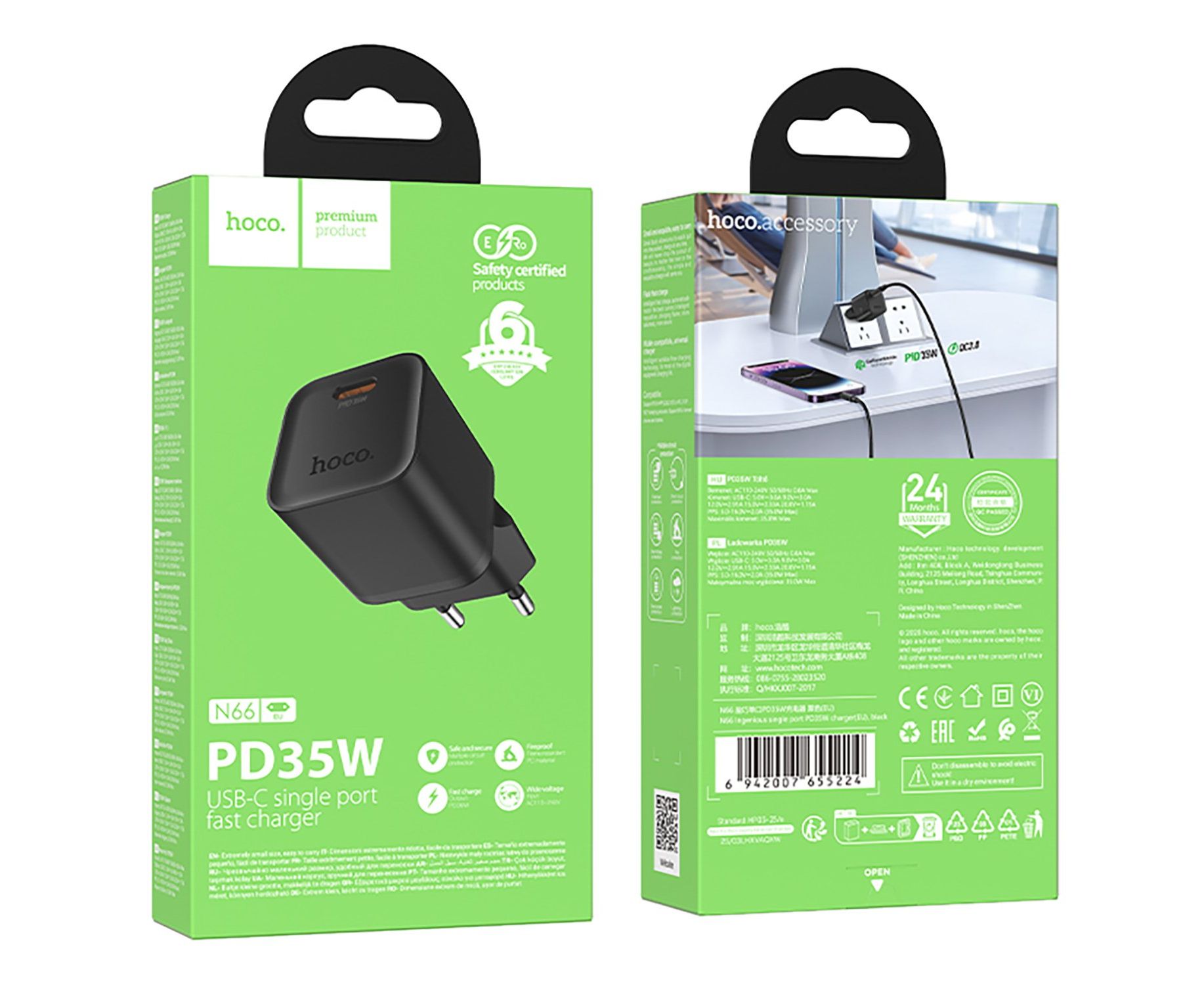 Адаптер Сетевой Hoco N66 Ingenious PD Type-C 3A/35W (black) (241006)