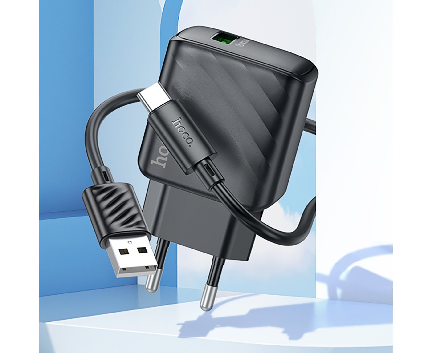 Адаптер Сетевой с кабелем Hoco CS21A Rich QC3.0 USB 18W (USB/Type-C) (black) (222791)
