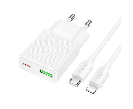 Адаптер Сетевой с кабелем Hoco N73 Mini PD+QC3.0 USB/Type-C 20W (Type-C/Lightning) (white) (242973)