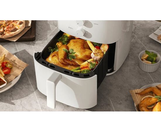Мультипечь Xiaomi Air Fryer любит большие застолья. Чаша объемом 6 литров позволяет готовить для всей семьи и друзей, не используя дополнительную технике. Даже целую курицу можно легко запечь внутри, не разрезая на части. Такая вместительность не имеет конкуренции.