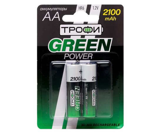 Аккумулятор AA Трофи HR6 (2-BL) Ni-MH 2100 mAh (20/240) (green) (211744)