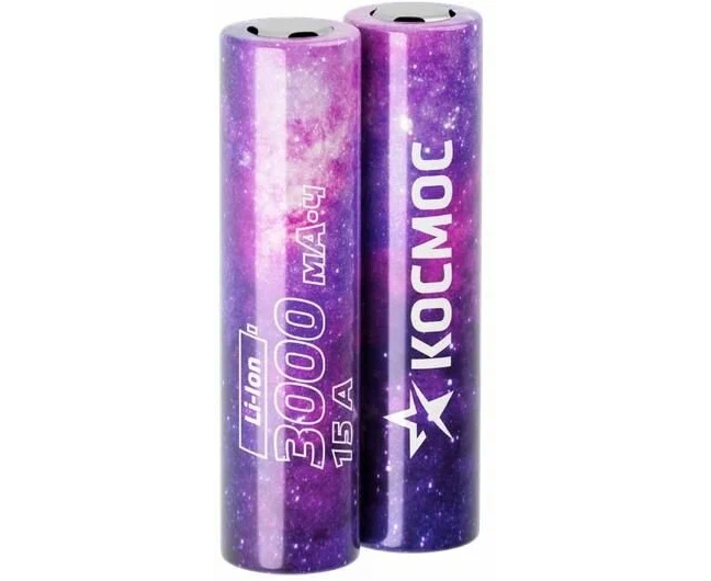 Аккумулятор Космос 18650 Li-ion 3000mAh KOC18650Li30UL20CS2 без защиты, 2шт шринк высокотоковый, низкая шляпка