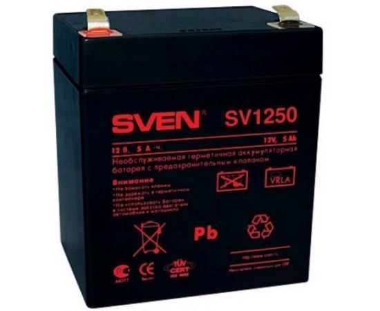 необслуживаемая свинцово-кислотная аккумуляторная батарея SV1250 для ИБП Sven, напряжение питания: 12 В, емкость: 5 А*ч, срок службы: 5 лет