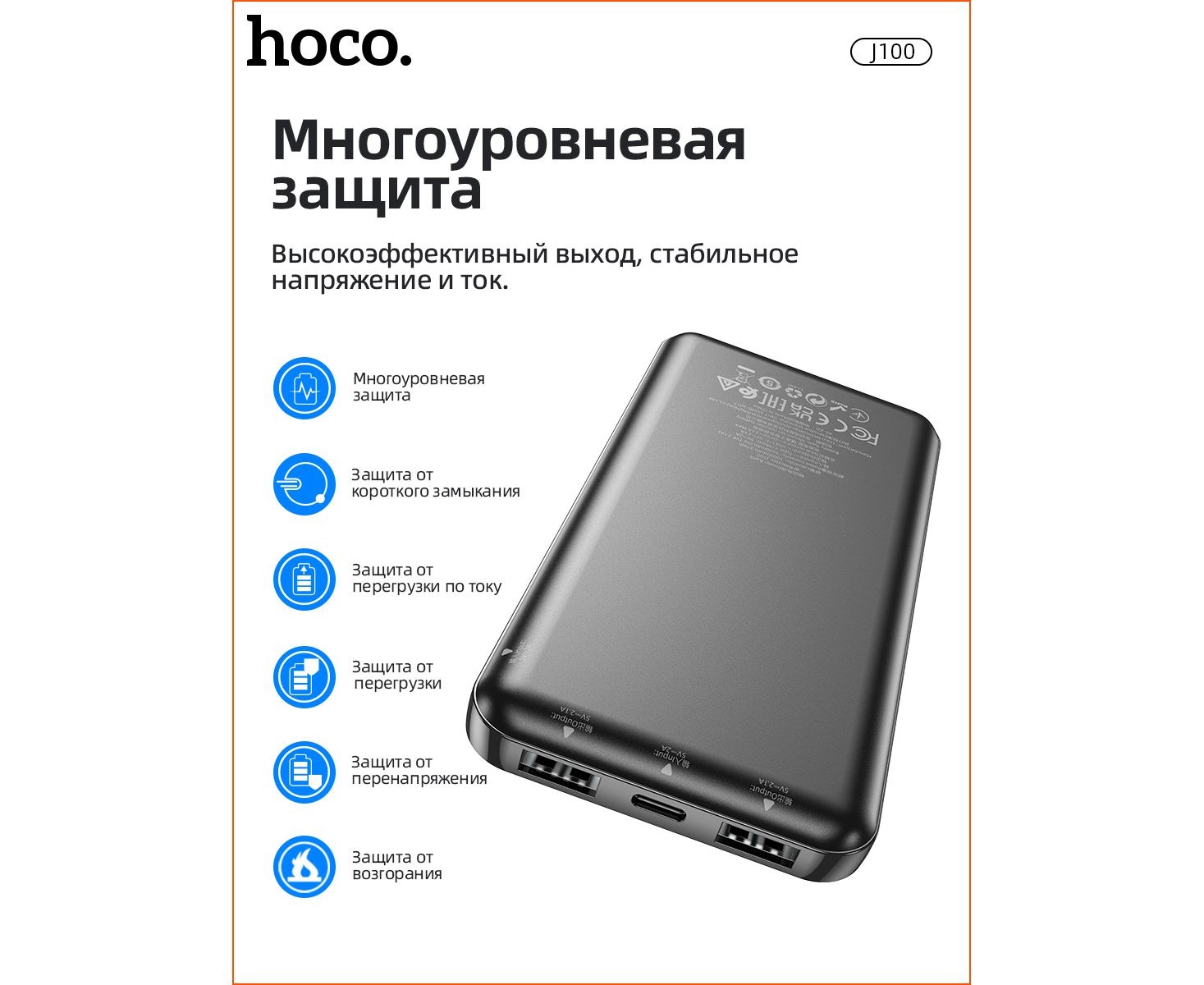 Аккумулятор внешний резервный HOCO J100 High-ranking 10000 mAh (чёрный)