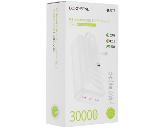 Аккумулятор внешний резервный BOROFONE BJ57B 30000mAh 2USB 2.4A 22.5W PD 20W быстрая зарядка с LED-индикатором (белый)
