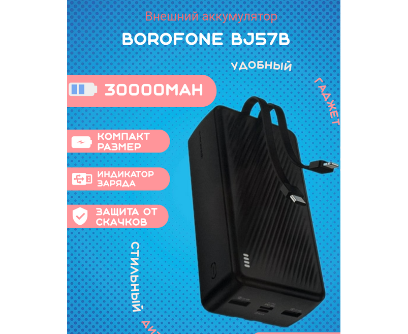 Аккумулятор внешний резервный BOROFONE BJ57B Graceful 22.5W+PD20W fully compatible power bank with cable(30000mAh) (черный)