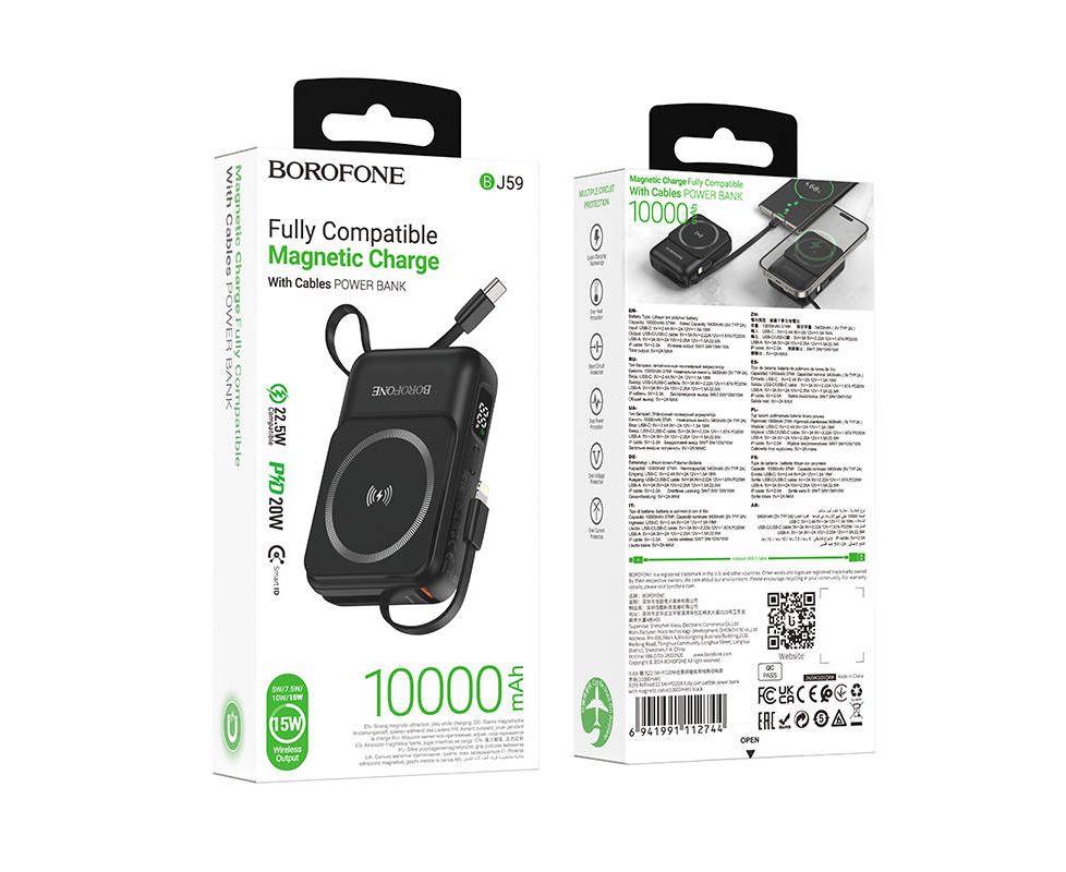 Аккумулятор внешний резервный BOROFONE BJ59 Refined 22.5W+PD20W fully compatible power bank with magnetic cable(10000mAh) (черный)