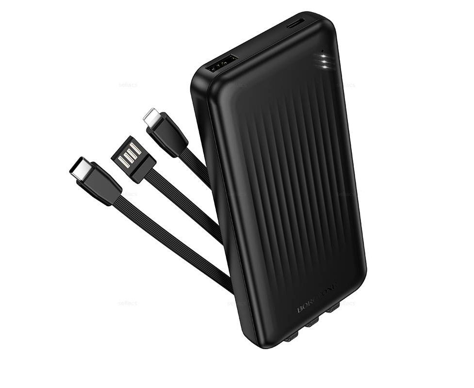 Аккумулятор внешний резервный BOROFONE BJ79 Clever power bank with 3 cables (10000mAh) (черный)