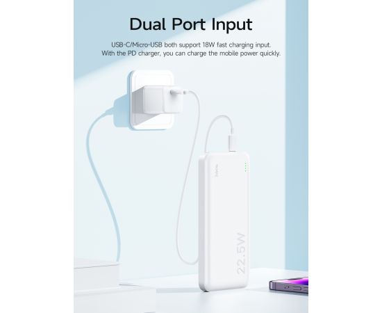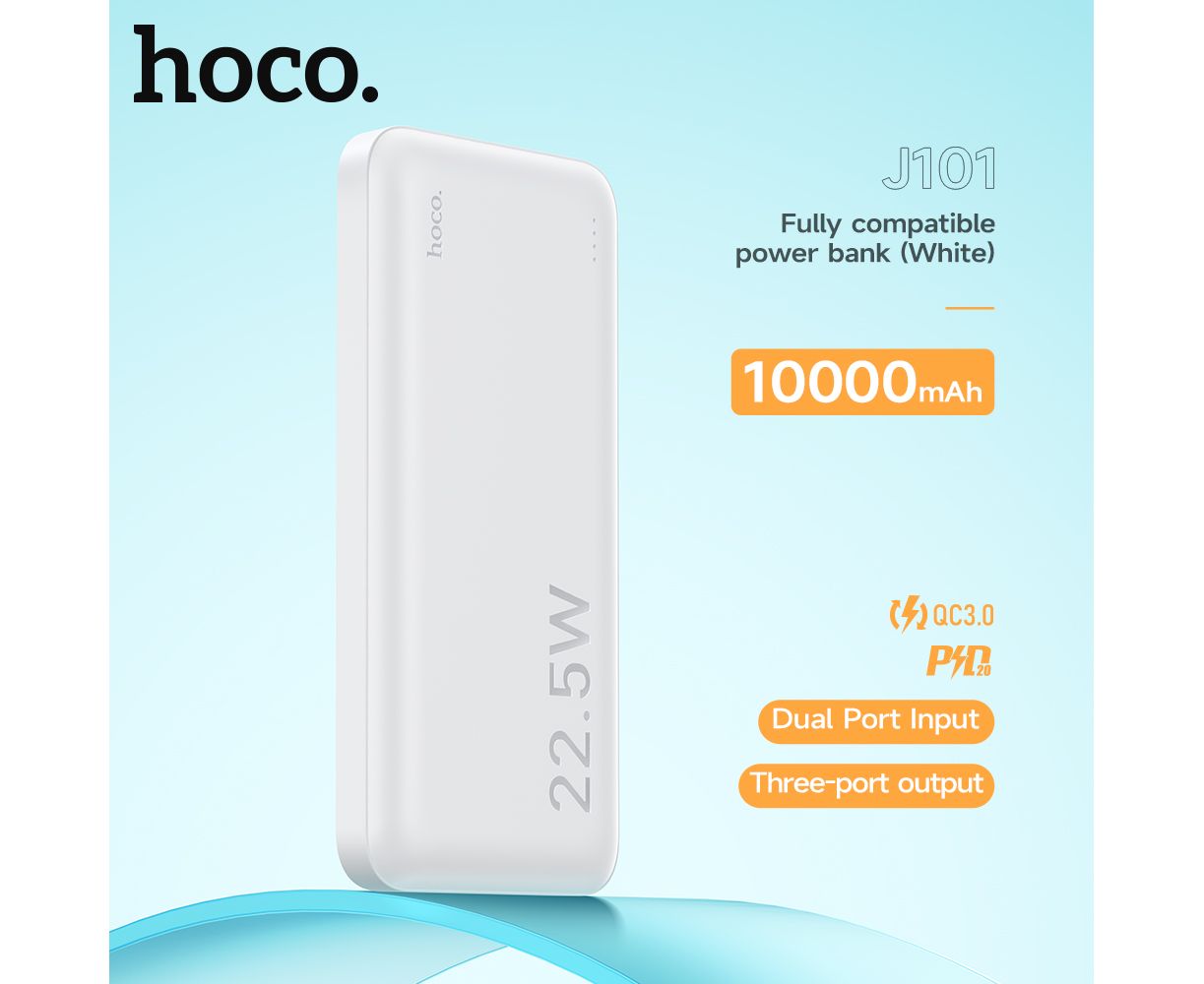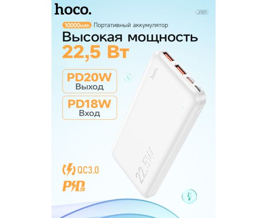 Аккумулятор внешний резервный HOCO J101 Astute 22.5W fully compatible 10000 mAh (белый)