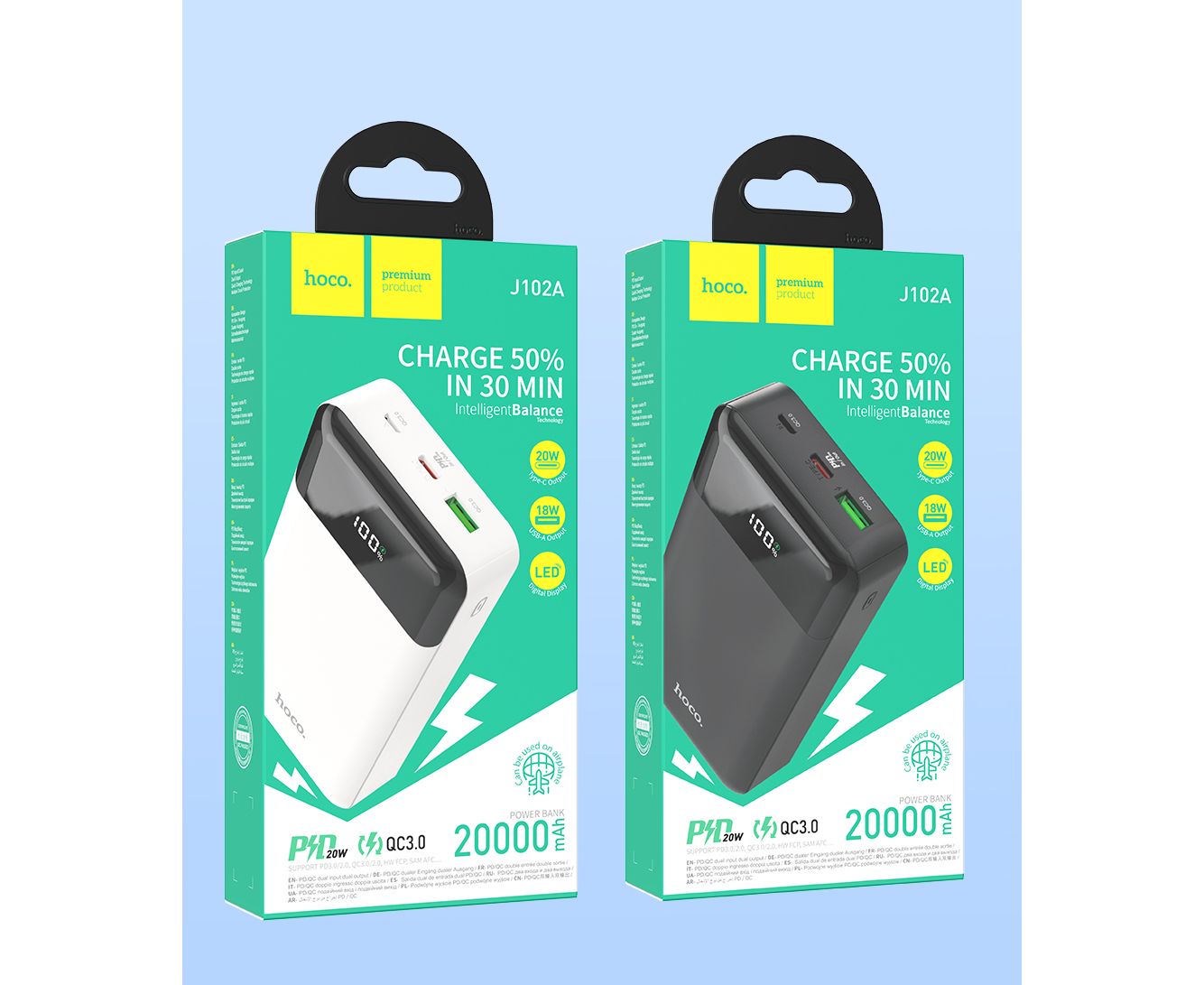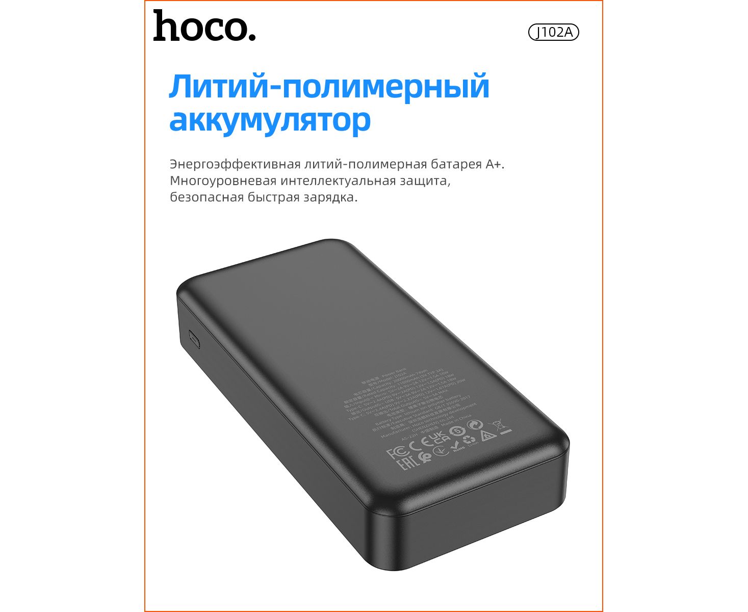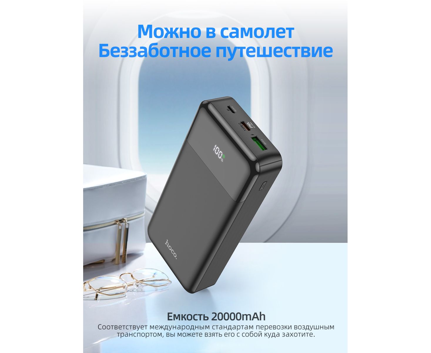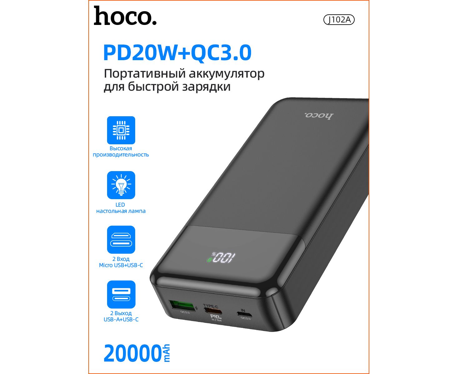 Аккумулятор внешний резервный HOCO J102A Cool figure 20000mAh (черный)
