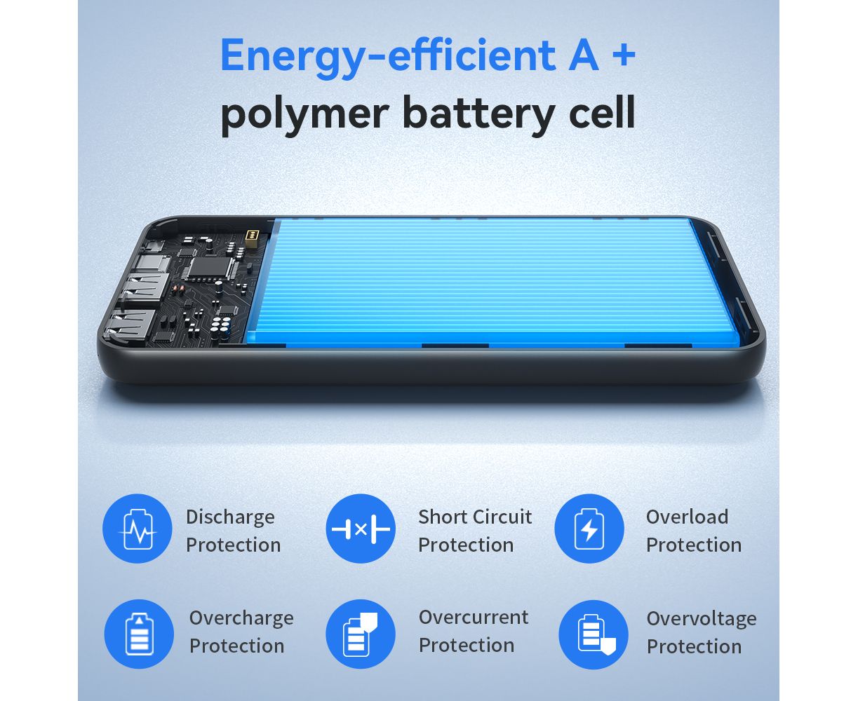 1. Ёмкость: 10000 мАч, 37 Вт·ч. Номинальная ёмкость: 5500 мАч (5 В, 2 А).