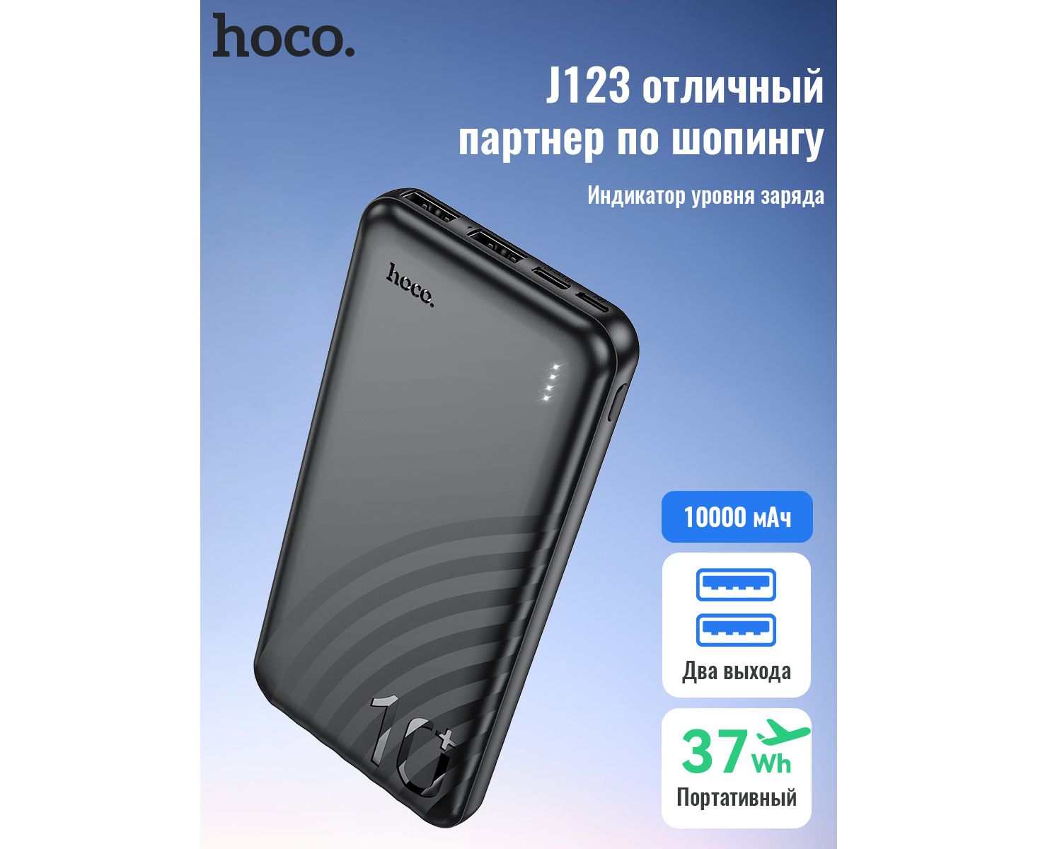 Аккумулятор внешний резервный HOCO J123 Element power bank(10000mAh) (черный)