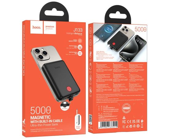 Аккумулятор внешний резервный HOCO J133 Triumph PD20W magnetic power bank with cable(Type-C)(5000mAh) (черный)