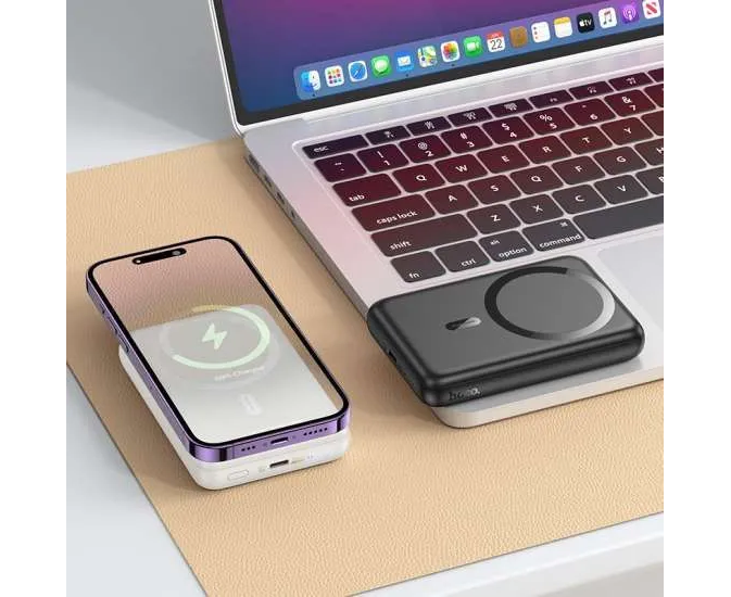 Hoco J141 - это мобильный блок питания, который предлагает удобное сочетание функций магнитной беспроводной зарядки с поддержкой MagSafe и простой беспроводной зарядки для всех остальных устройств, поддерживающих функцию беспроводной зарядки Qi. Также вы можете просто заряжать любой гаджет посредством подключения кабеля.