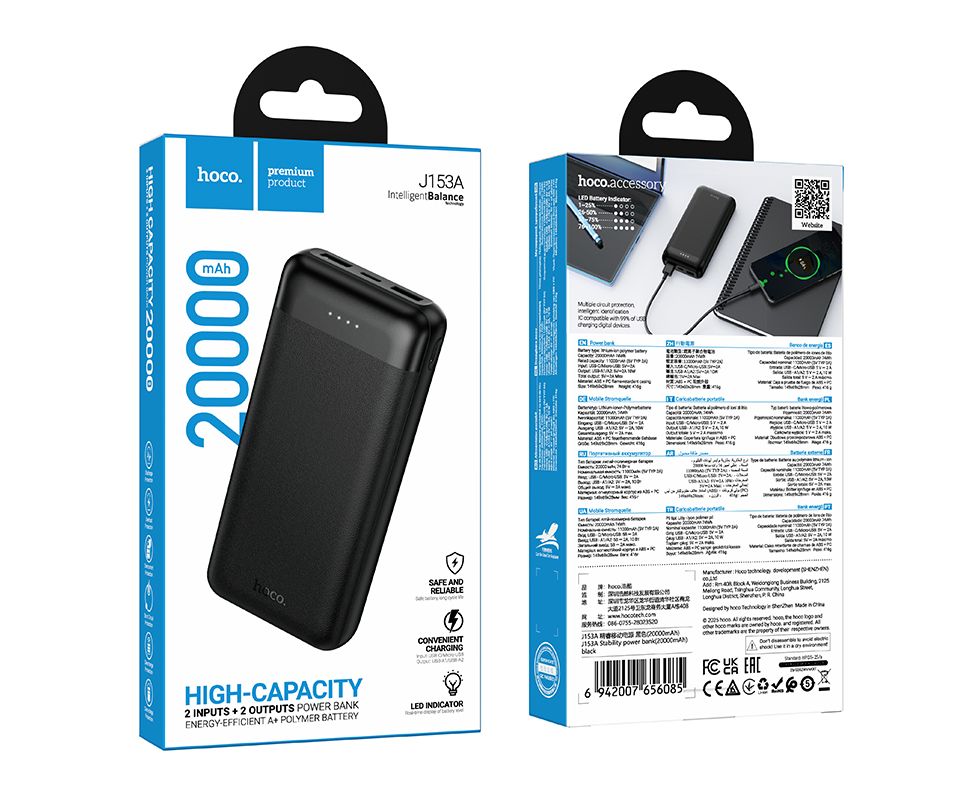 Аккумулятор внешний резервный HOCO J153A Stability (20000mAh) (черный)