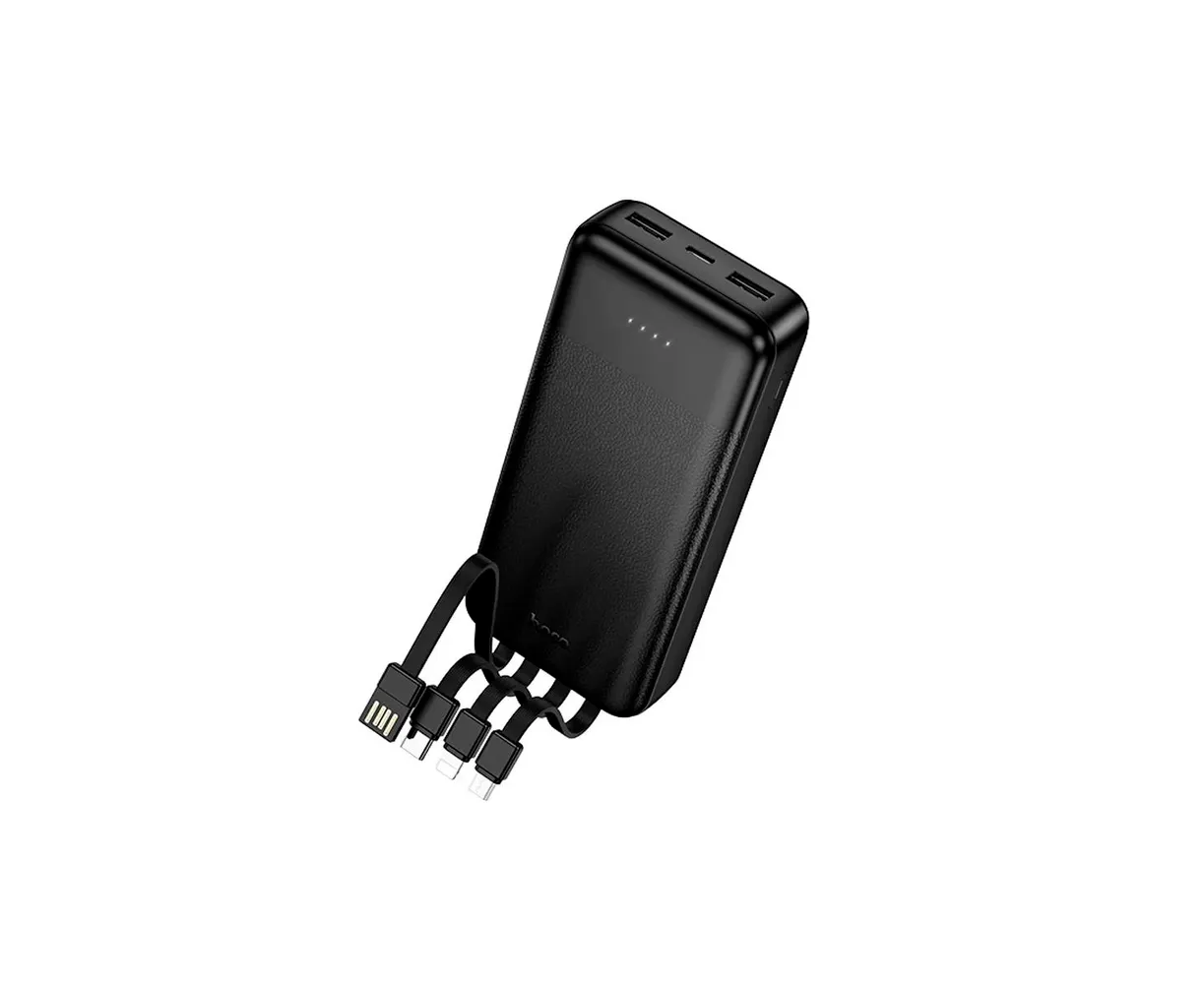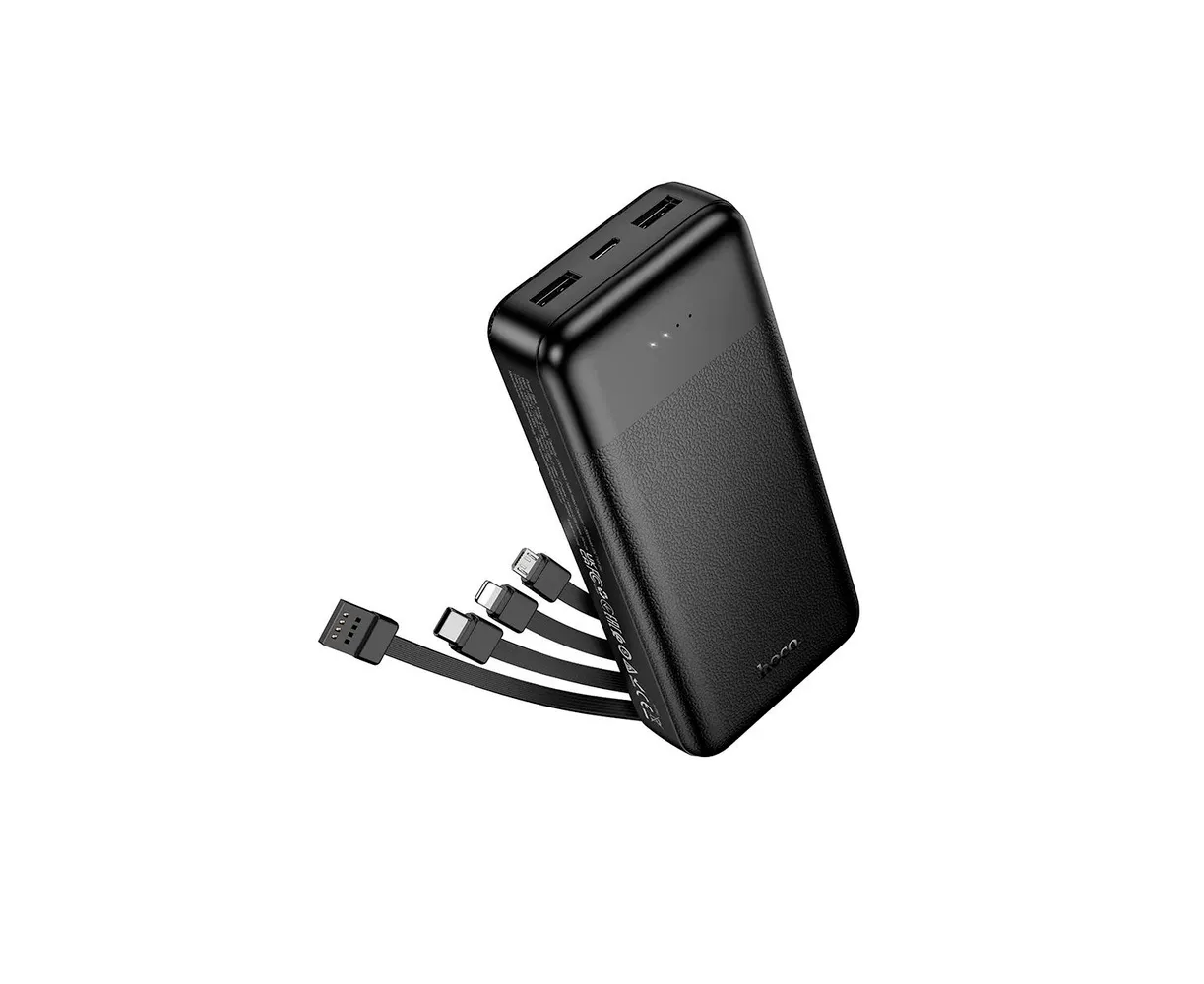 Аккумулятор внешний Hoco J163A 20000mAh, встроенные кабели Lightning+MicroUSB+TypeC+USB, черный