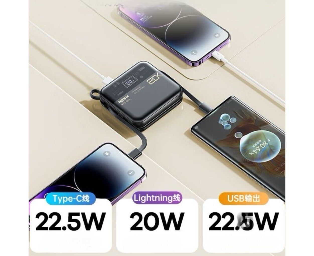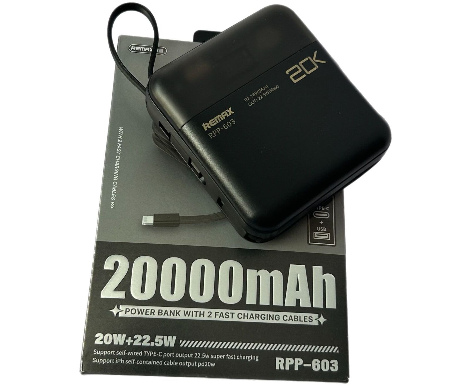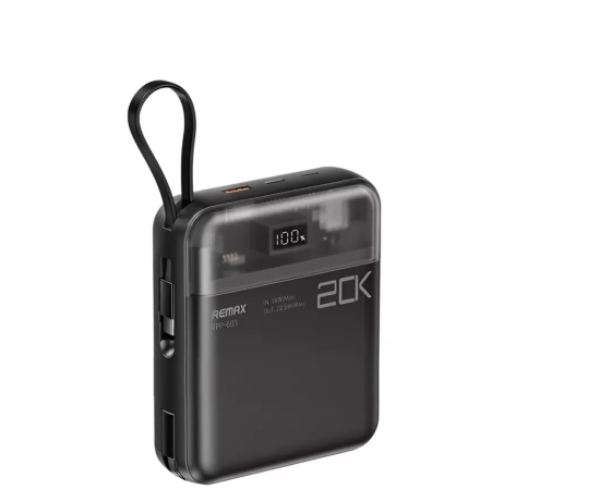 Аккумулятор внешний резервный REMAX Sucha Pro Series PD 20W+QC 22.5W Power Bank with 2 Fast Charging Cables 20000mAh RPP-603 (черный)