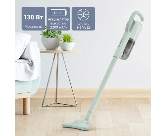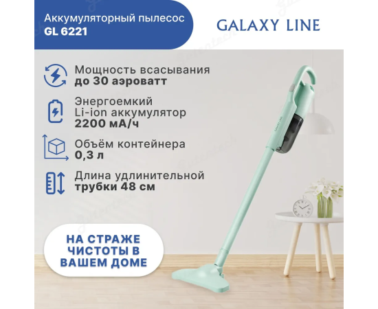 Аккумуляторный пылесос Galaxy LINE GL 6221 МЯТНЫЙ , мощность 130 Вт, мощность всасывания до 30 аэроватт