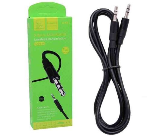 Аудио-кабель, Denmen DX01, 3.5 мм, силикон, разъем-пластик, 1.0 м, круглый, черный, фирменная упаковка