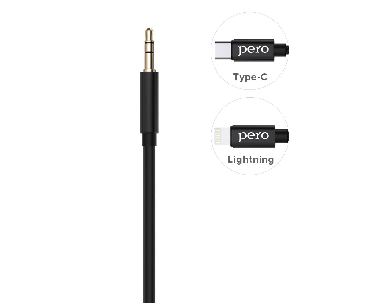 Аудио-кабель PERO MC-02 LIGHTNING TO 3.5 JACK, 1м, Black