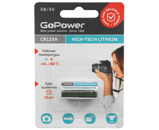 Батарейка GoPower CR123A-1BL (00-00018324) 1500mAh, 3В, (1/8/80)