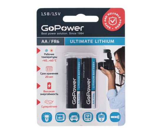 Батарейка GoPower FR6 AA BL2 Lithium 1.5V (2/20/200)