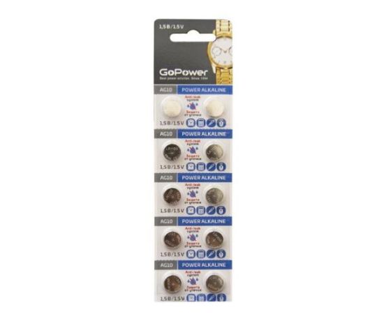 Батарейка GoPower G10/LR1130/LR54/389A/189 BL10 Alkaline 1.5V (10/1000/3600)