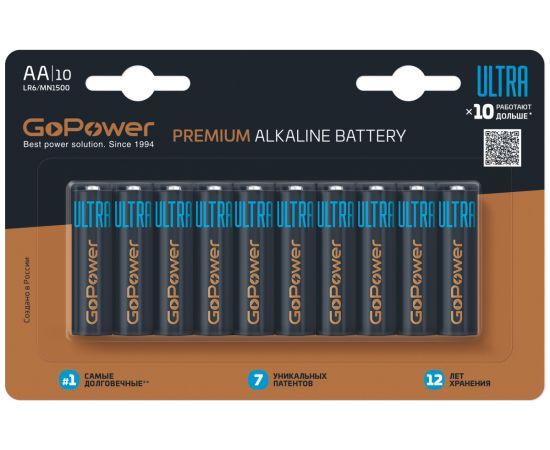 Щелочные батарейки GoPower серии Ultra созданы для максимально долгой работы. Это батарейки премиум качества с максимальной емкостью и длительным хранением без потерь характеристик