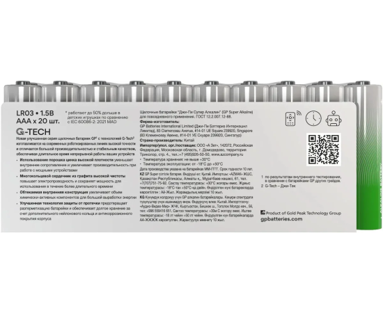 Батарея GP Super Alkaline 24AA21-2CRSWC20 AAA (20шт) спайка
