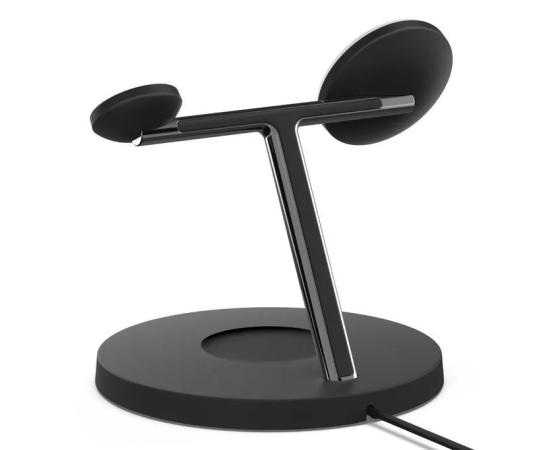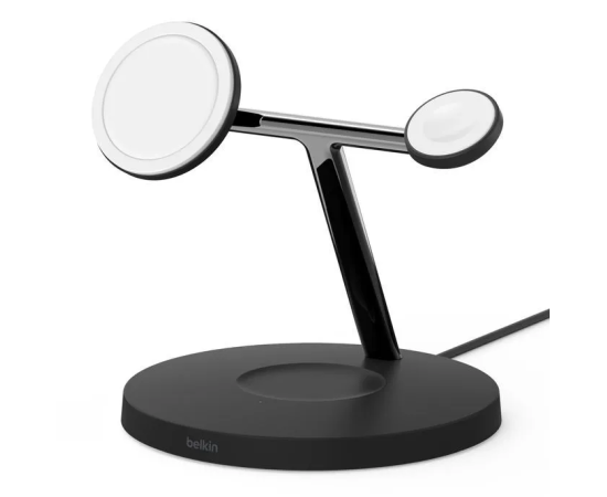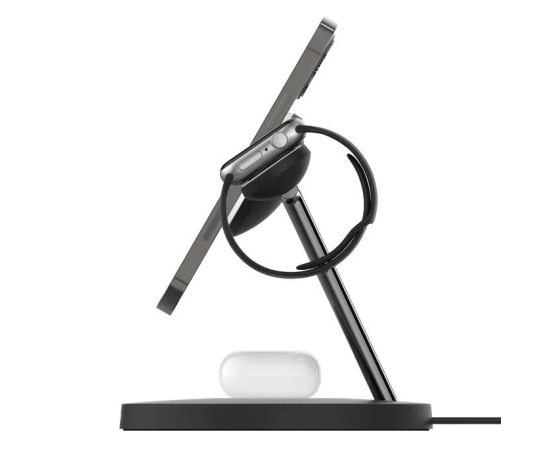Беспроводная зарядная подставка Belkin BOOST Charge 3-в-1 с MagSafe - это удобный способ максимально быстро зарядить все ваши устройства Apple. Новый магнитный модуль быстрой зарядки заряжает новейшие Apple Watch Series 7 от 0 до 80% примерно за 45 минут. В то же время вы можете быстро и безопасно заряжать свой iPhone в портретном или ландшафтном режиме на зарядной подставке Magsafe и свои AirPods на беспроводной зарядной станции Qi.