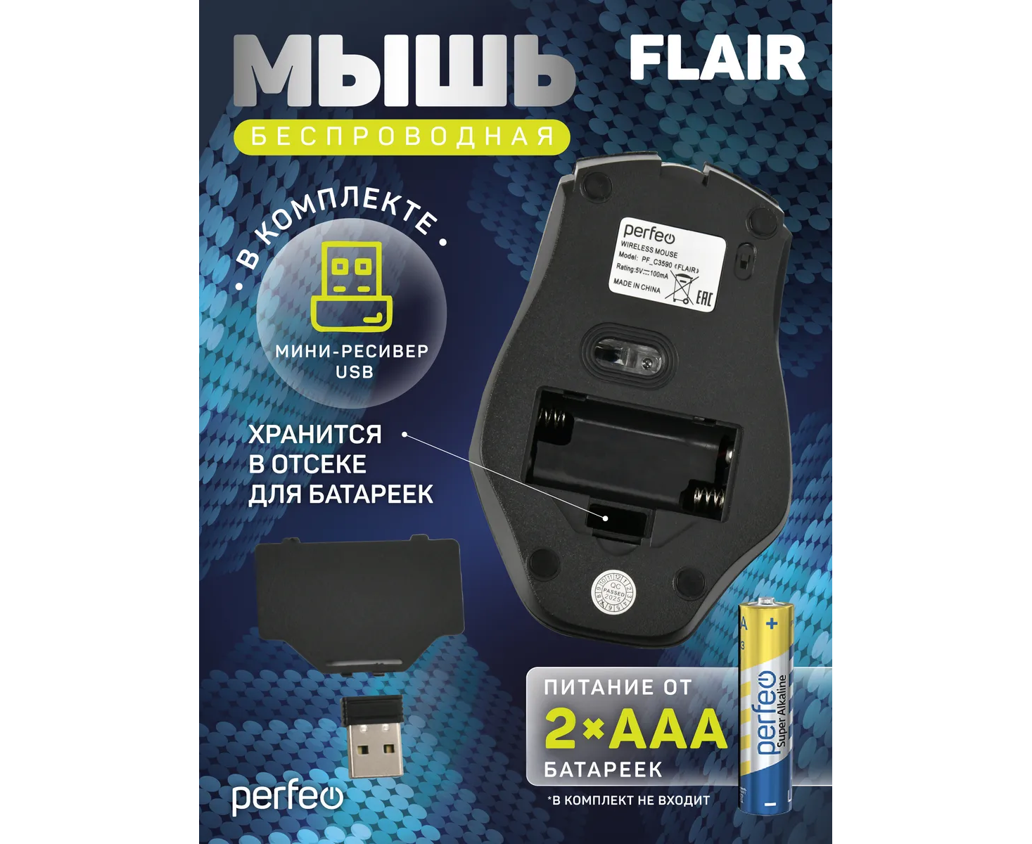 Беспроводная оптическая мышь для компьютера Perfeo Flair подходит для повседневного использования в офисе и дома. Мышка имеет симметричный дизайн, поэтому подходит и для правой, и для левой руки. Удобная эргономичная форма мышки хорошо лежит в руке. Это делает использование более комфортным и продолжительным, рука не устает. Колёсико -кнопка рифленое обеспечивает комфортный скроллинг плавный и без рывков. Высокоточный сенсор с разрешением 800 / 1200 / 1600 DPI позволяют использовать в любых приложениях – игра, рисование или простая работа. Конструкция мышки простая и надёжная, что обеспечит долгий срок службы. Беспроводная мышка работает по радиоканалу на частоте 2,4 ГГц, передатчик идет в комплекте находится в батарейном отсеке. Радиус действия до 10 метров. Батарейки расходуются экономично и их хватает на долгий срок. Оптический сенсор мыши позволяет работать практически на любой поверхности. Мышка подходит для ноутбука и стационарных компьютеров. Системные требования: Windows 11/10/8/7/XP, Mac OS, свободный порт USB. Питание от 2 батареек ААA (в комплект не входят). Размеры: 115 х 76 х 40 мм