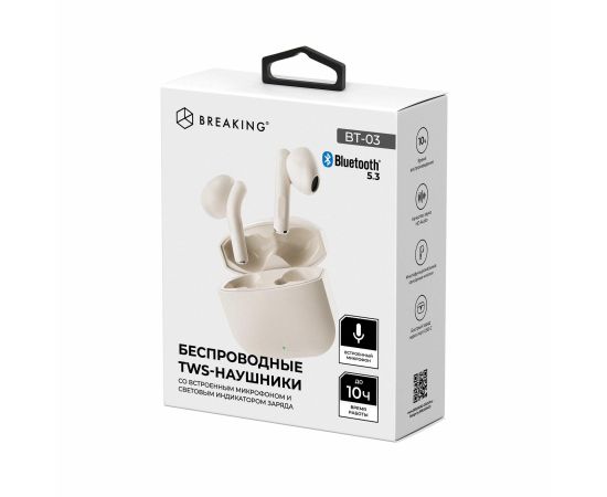 Беспроводная стереогарнитура Breaking BT-03, Bluetooth 5.3 (Бежевый)