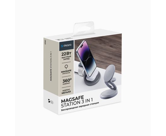 Беспроводная зарядная станция 3 в 1 MagSafe Rotation QI складная, графит, Deppa