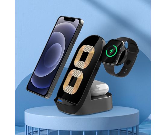 Беспроводное зарядное устройство KAKUSIGA KSC-778 3-in-1 15W Black