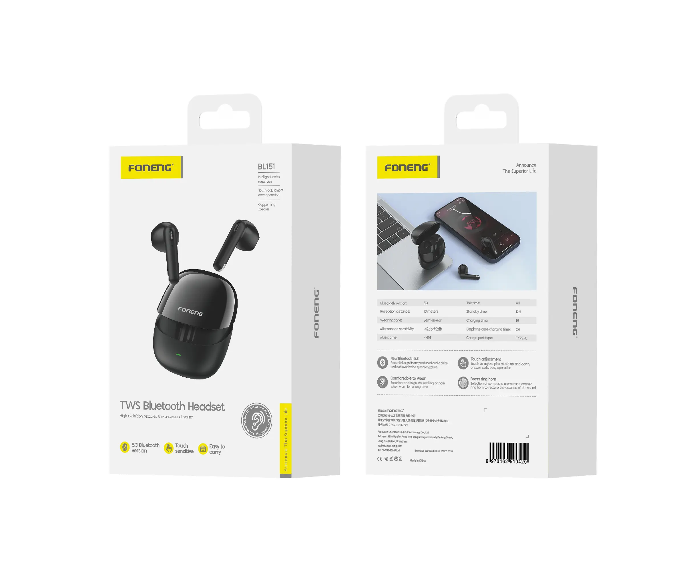 Беспроводные Bluetooth-наушники Foneng BL151 (Black)