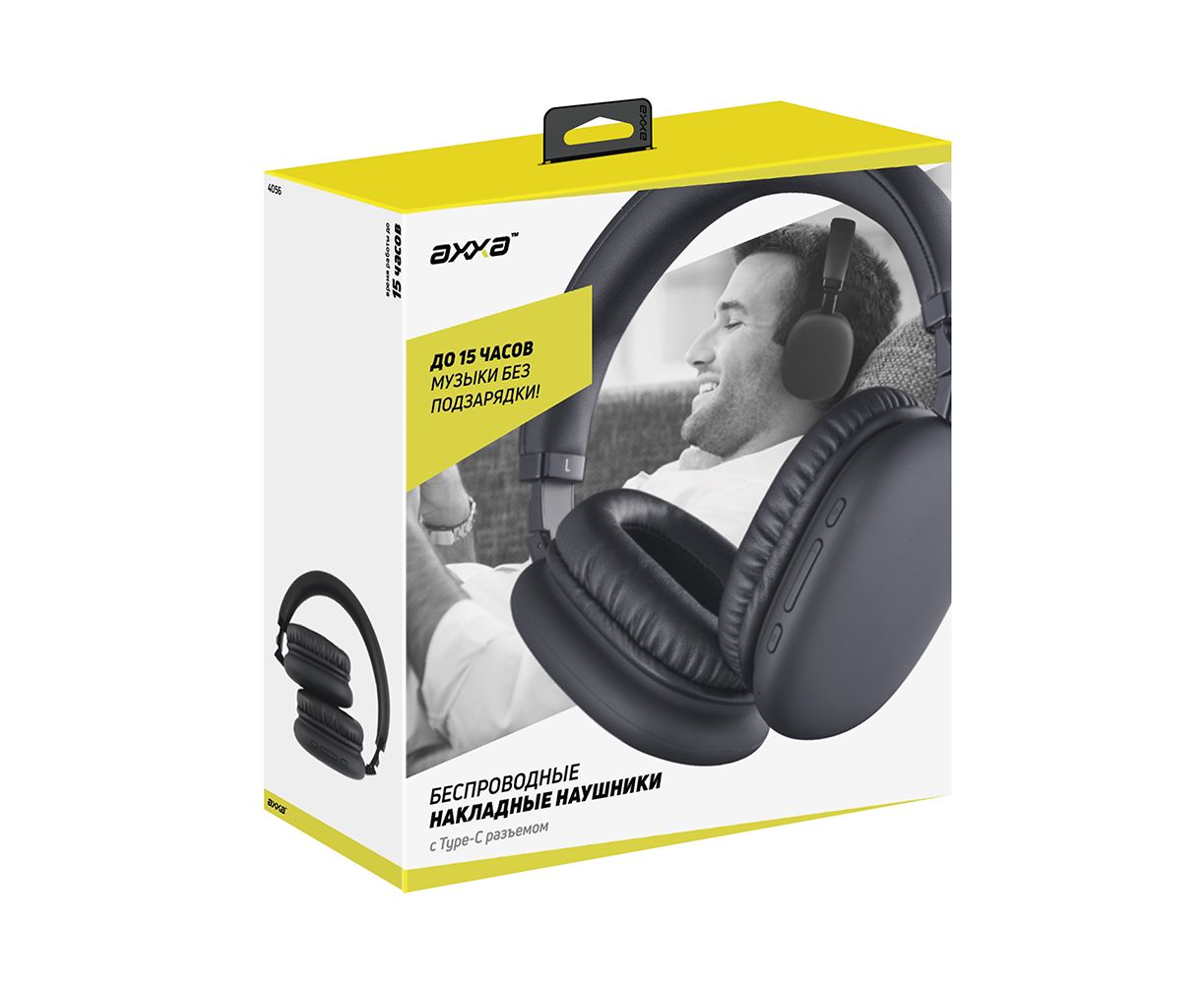Беспроводные накладные наушники AH-01, BT 5.3, 400 мАч, черный, AXXA 2, 4056