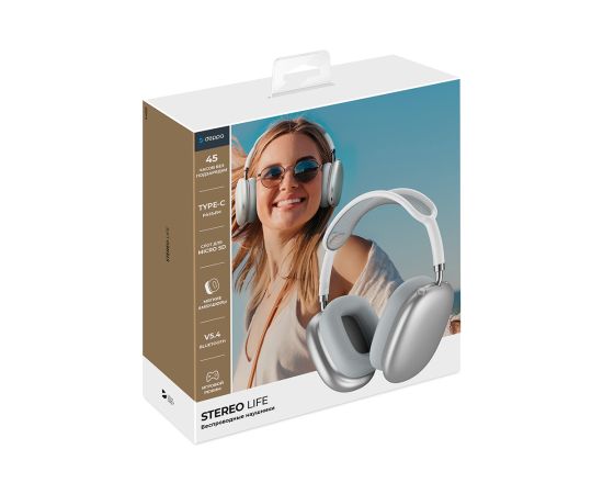 Беспроводные накладные наушники Stereo Life, BT 5.4, 350мАч, серебристый, Deppa
