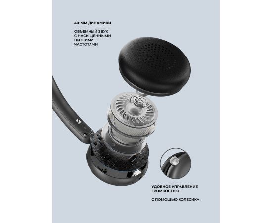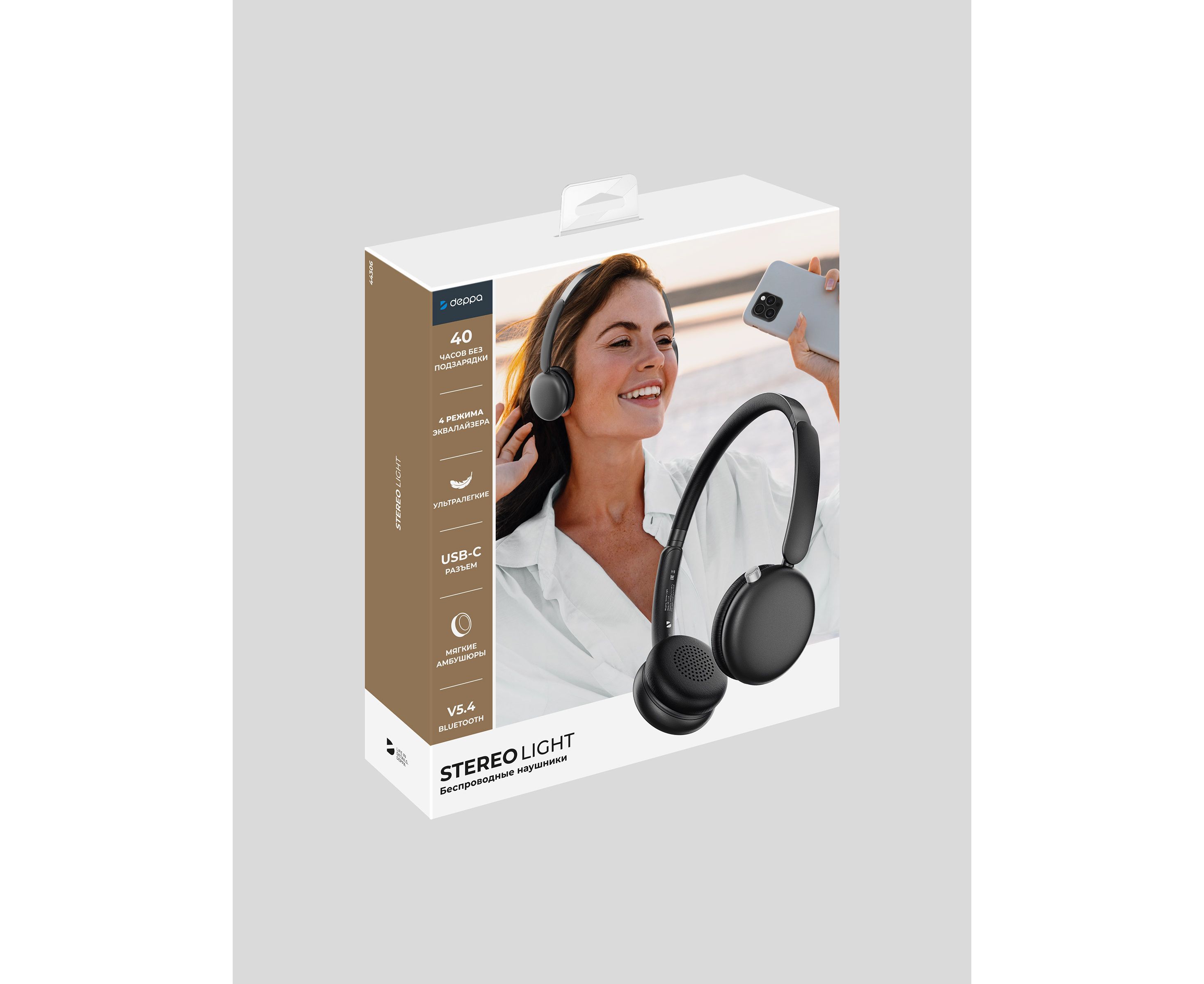 Беспроводные накладные наушники Stereo Light, BT 5.4, 300 мАч, черный, Deppa
