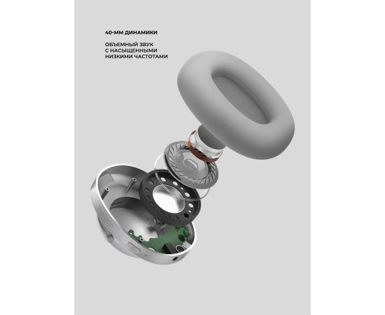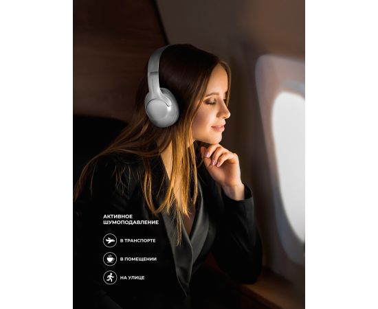 Беспроводные накладные наушники Stereo Ultra ANC, BT 5.4, ANC/ENC, 500мАч, серебристый, Deppa