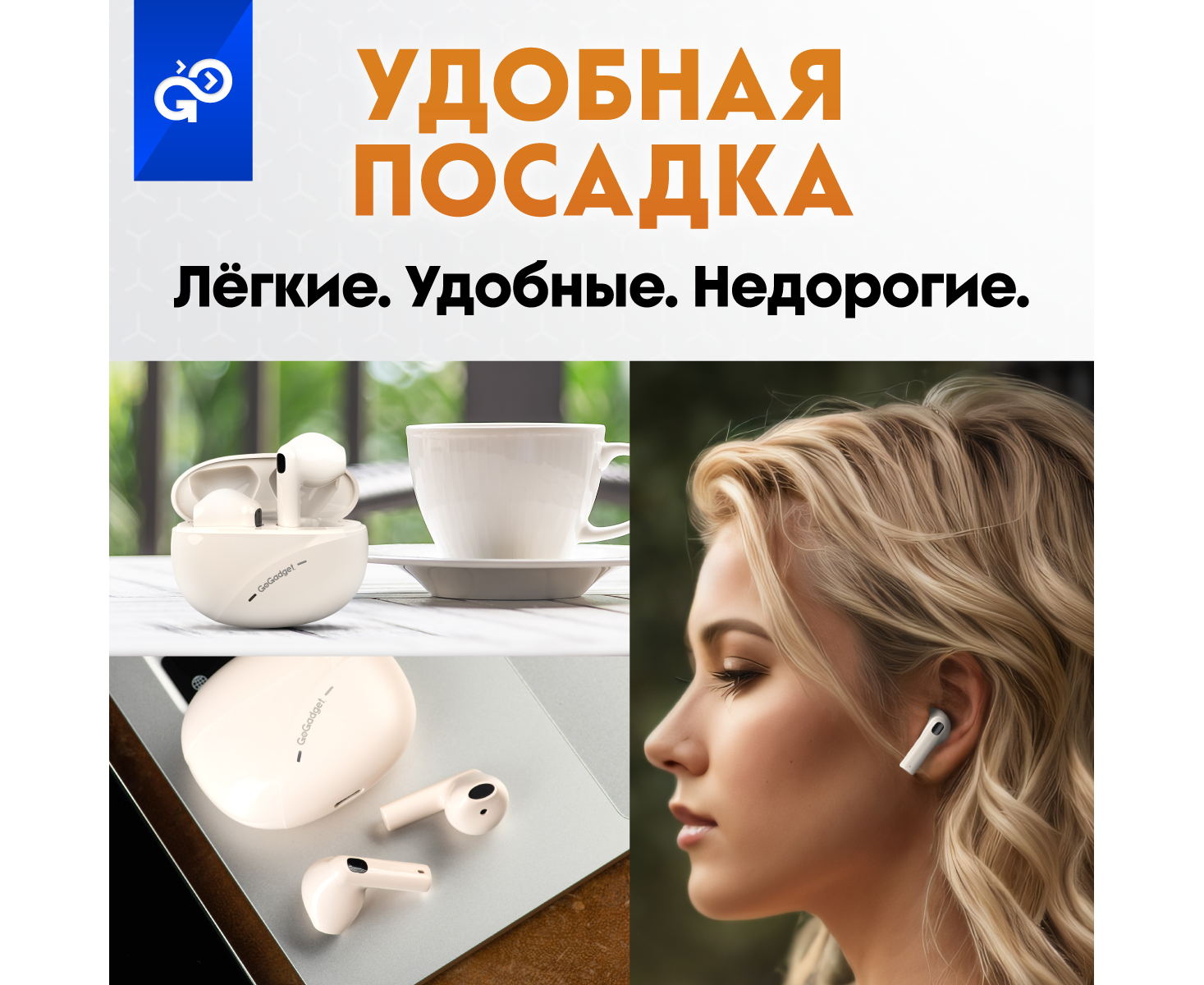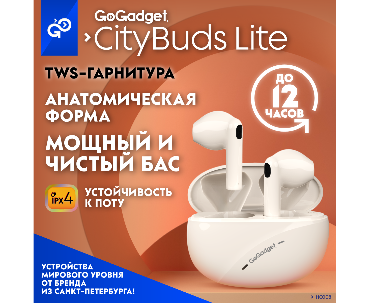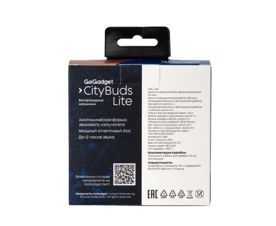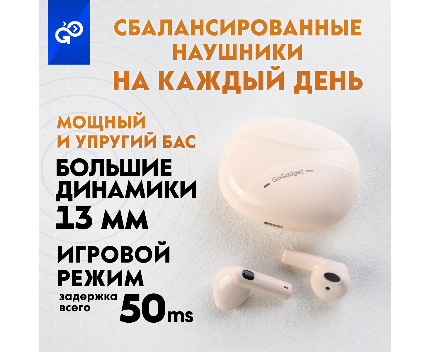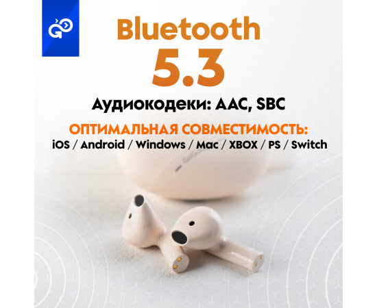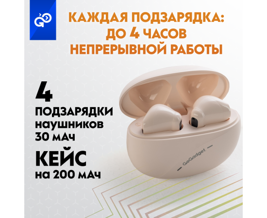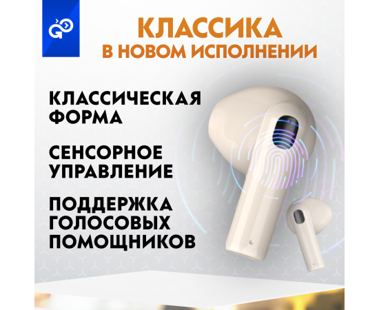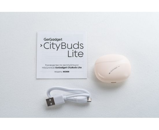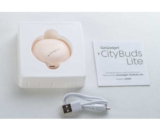 Беспроводные наушники GoGadget CityBuds Lite, вкладыши, 2 микрофона, супербас, 30+200 мАч, до 12 ч, БЕЖЕВЫЙ
