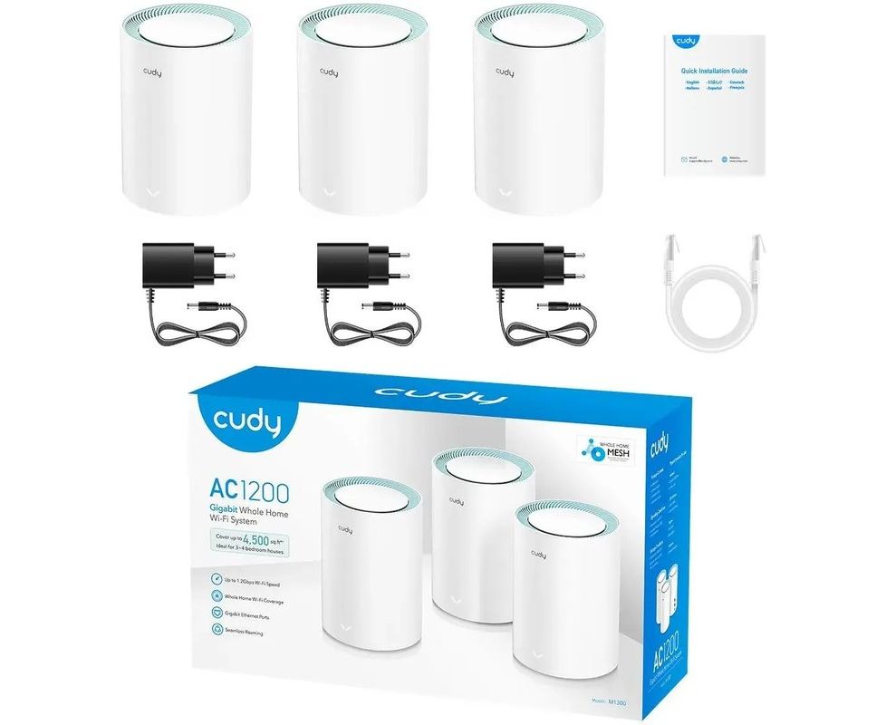 Бесшовный Mesh роутер Cudy M1300 (3-Pack) AC1200 10/100/1000BASE-TX белый