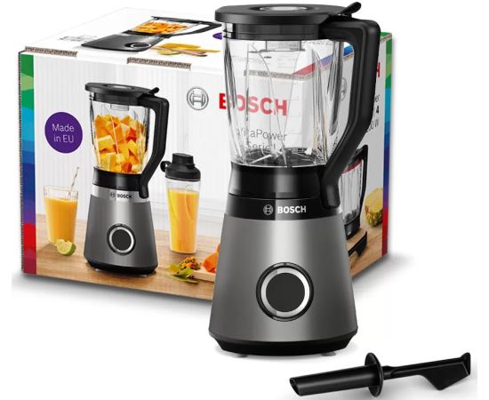 Блендер Bosch MMB6172S оснащен кувшином в 1.5 литра из термостойкого стекла, он подходит для горячих супов так и для холодных напитков.