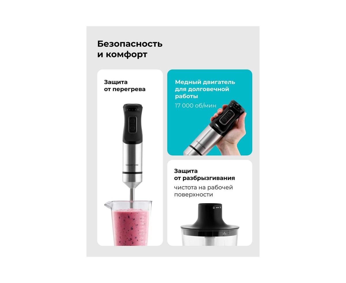 Многофункциональность: блендер GALAXY LINE GL 2141 подходит для приготовления супов-пюре, соусов, коктейлей, детского питания и многого другого