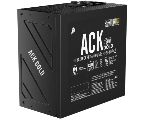 Блок питания 1STPLAYER ACK Gold 750W Black (HA-750BA2-BK) / ATX 3.1, PCle 5.1, APFC, 80 Plus Gold, LLC+DC-DC, full Teapo caps, 140mm fan, full modular