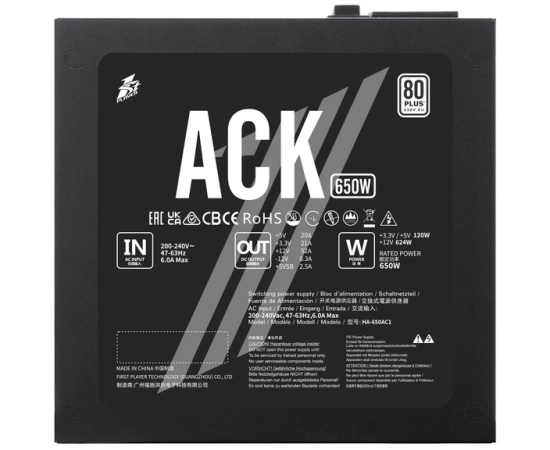 Блок питания 1STPLAYER ACK (HA-650AC1) 650W Black / ATX 2.4, APFC, 80 Plus Standard, Double Forward, 140mm fan, non-modular