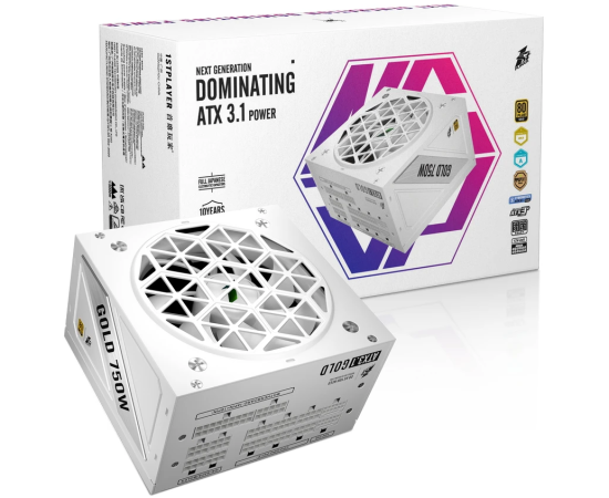 Блок питания 1STPLAYER NGDP Gold 750W White (HA-750BA4-WH) /ATX 3.1, APFC, 80 Plus Gold, LLC+DC-DC, full Japan solid-state caps, 120mm fan, full mod