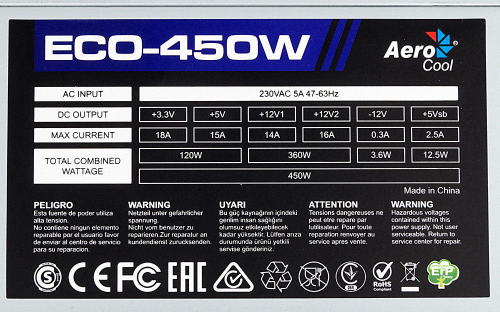 Блок питания Aerocool ECO-450 ATX 4710700957875