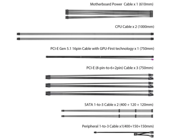 Количество разъёмов 12+4-pin PCI-E 5.1 (12V-2х6)